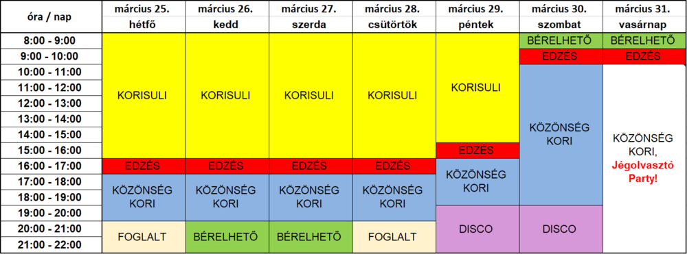 Edzésenként 1 csapatnak 1 öltöző áll rendelkezésére.